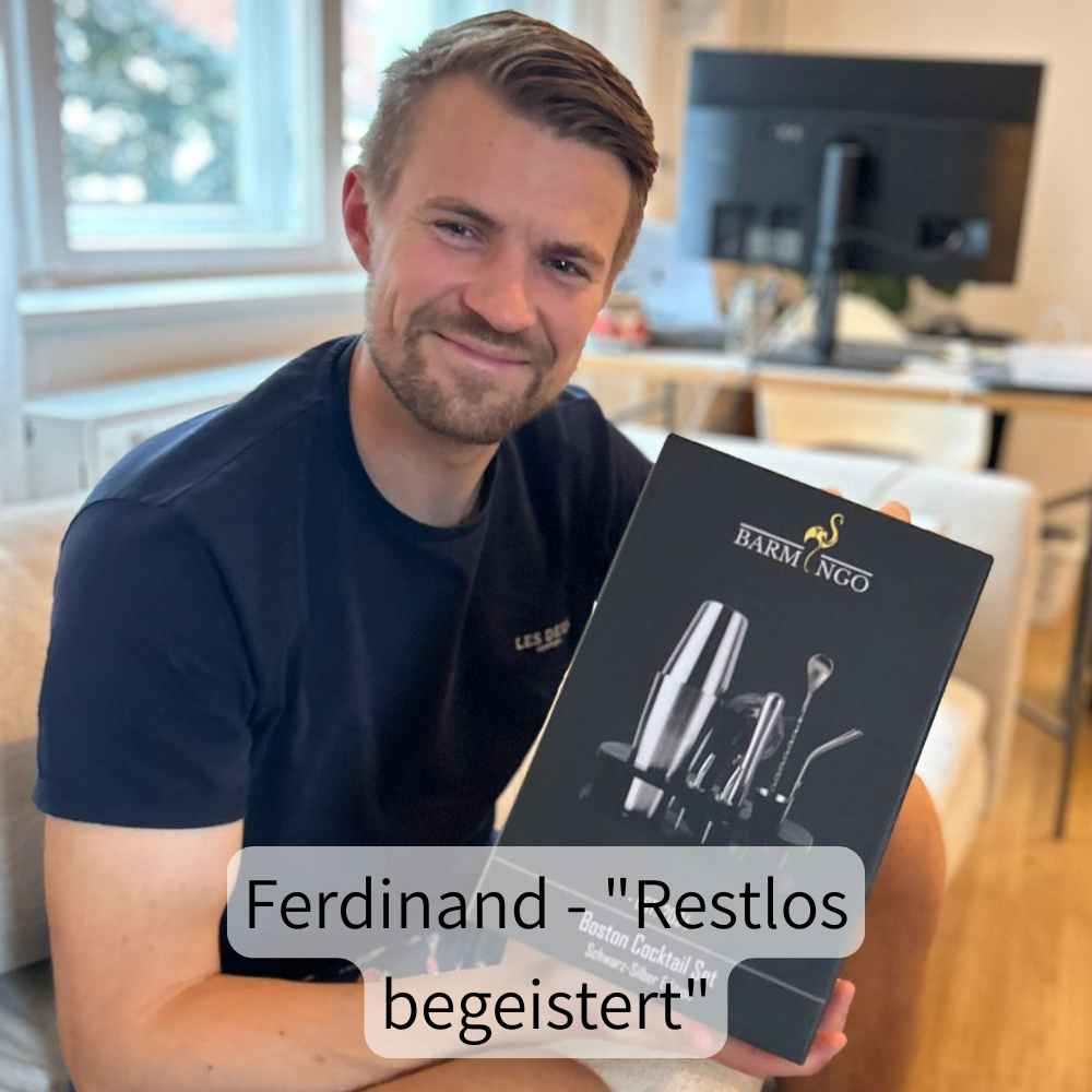 "Das Cocktailset von Barmingo ist die ultimative Geschenkidee. Mit seinem super modernen und stylischen Design passt es perfekt in jede moderne Küche oder Hausbar. Das vollumfängliche Set ist nicht nur etwas für Profis, auch Anfänger kommen voll auf Ihre Kosten. Ich kann das Set von Barmingo einfach nur wärmstens empfehlen."