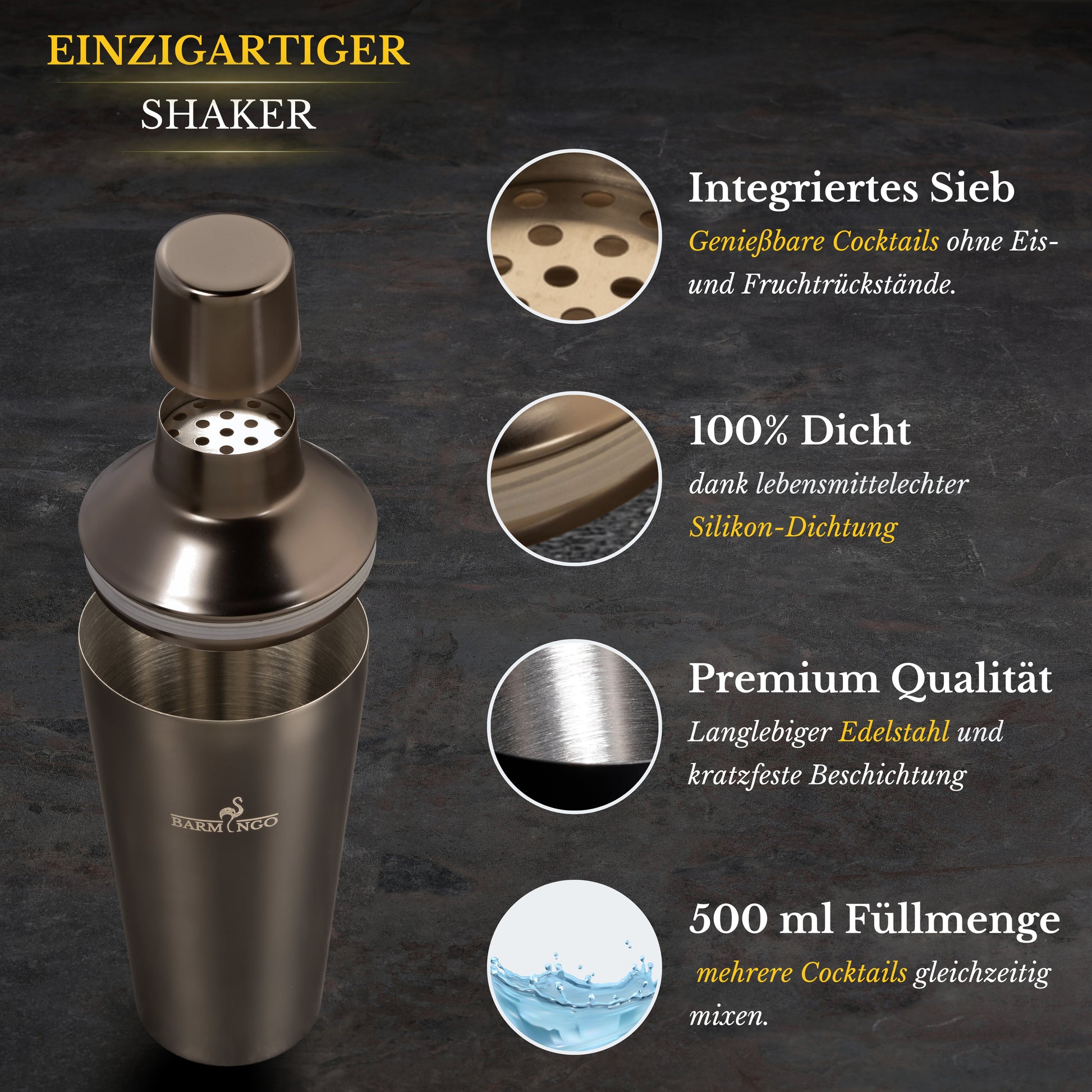 BARMINGO Cocktail Set 5-teilig | Farbe: Metallic-Schwarz | 500 ml Shaker Set mit Barzubehör und Transporttasche